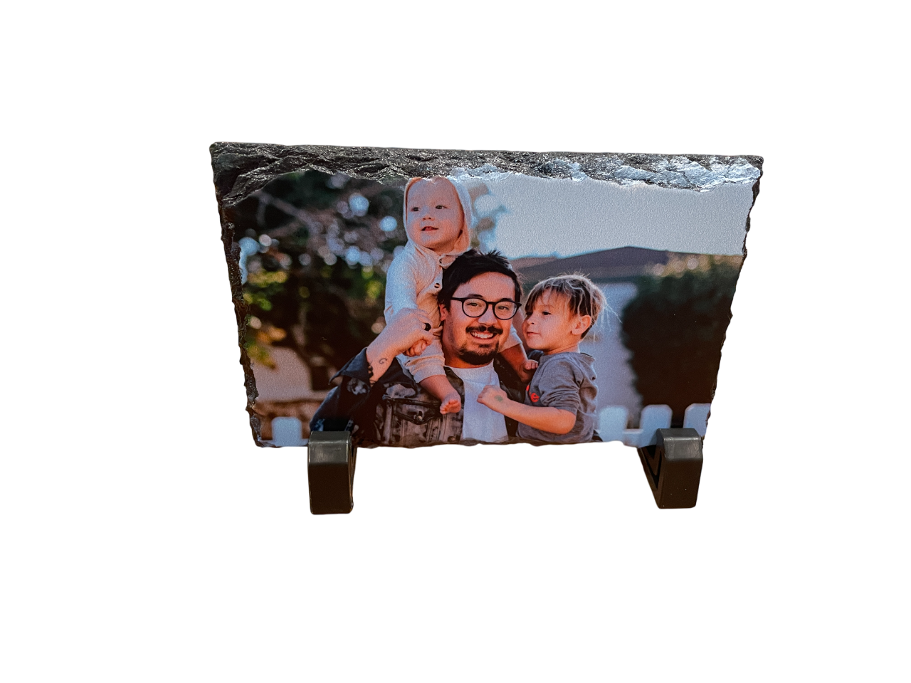 Turn your treasured memories into a timeless keepsake with our Custom Slate Photo Plaque. Each piece is made from natural rock slate with beautifully textured, chiseled edges that give a stunning rustic look. Your chosen photo is permanently printed directly onto the slate using high-quality UV printing, resulting in vivid colors, sharp detail, and a finish that lasts for years.
