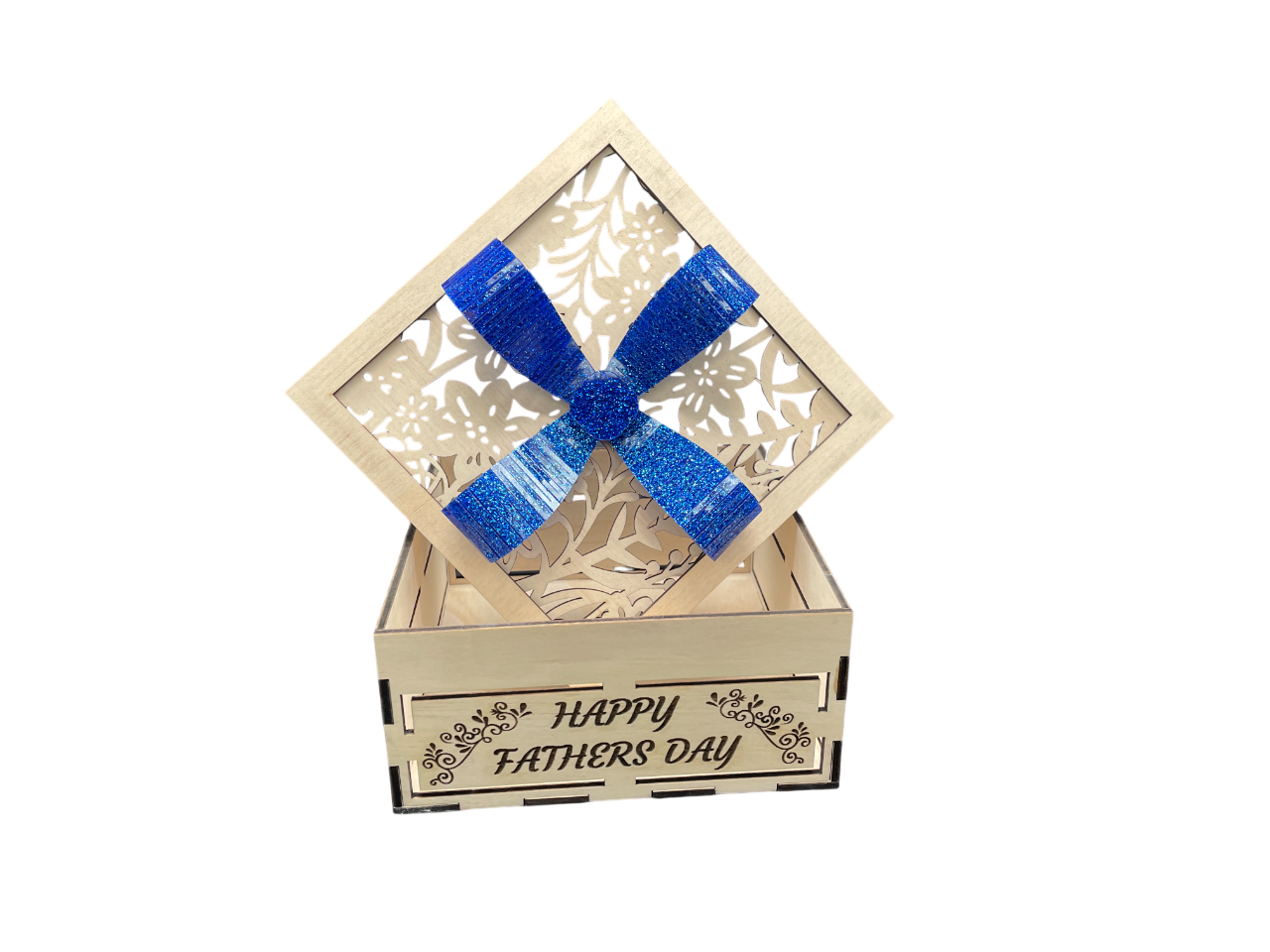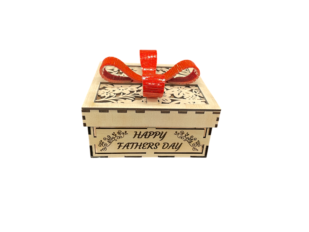 This charming square-shaped gift box is crafted from 3mm laser-cut panels, featuring custom engraved messages to suit any occasion and a stunning 3D laser-cut bow on the lid.