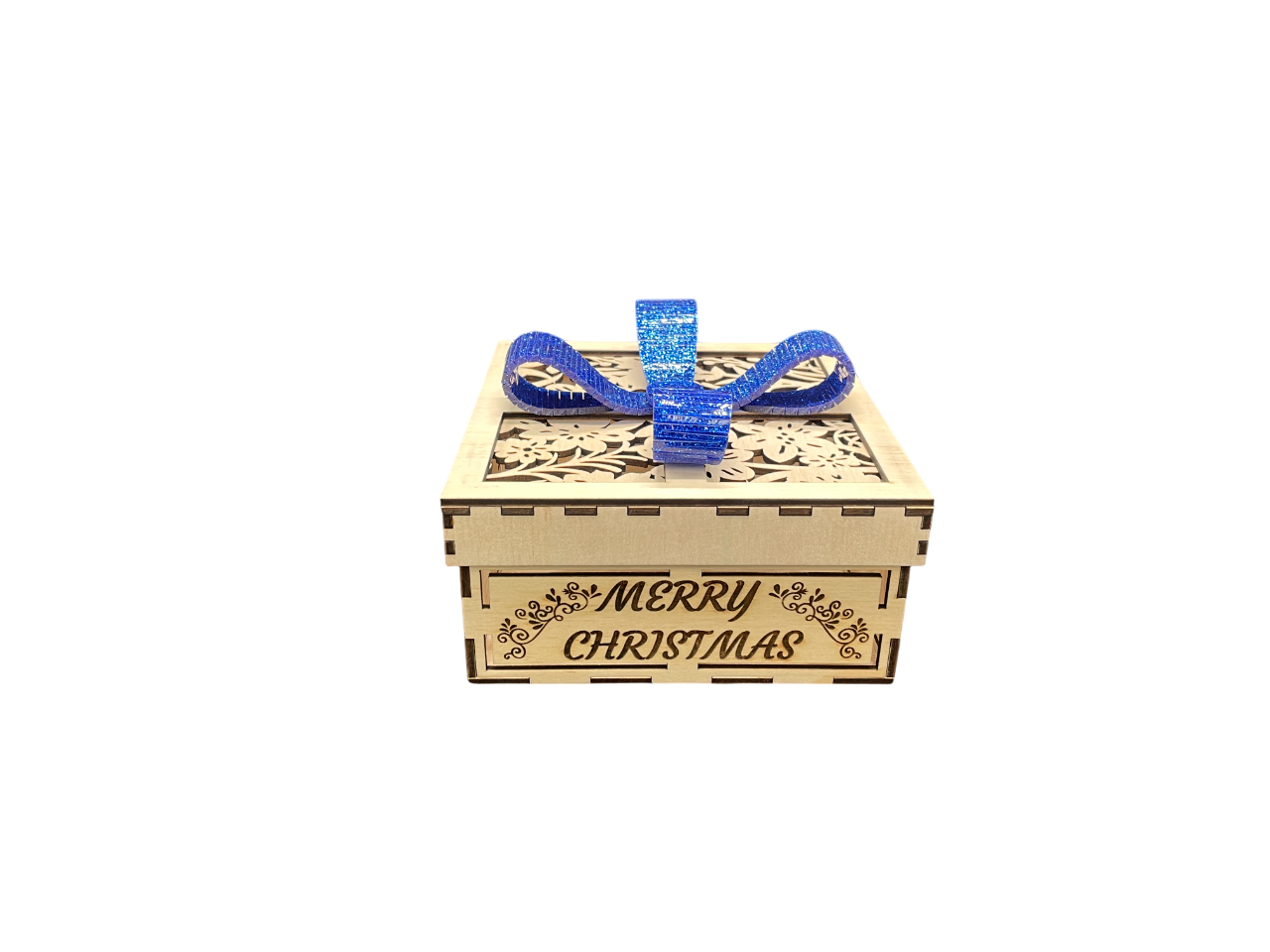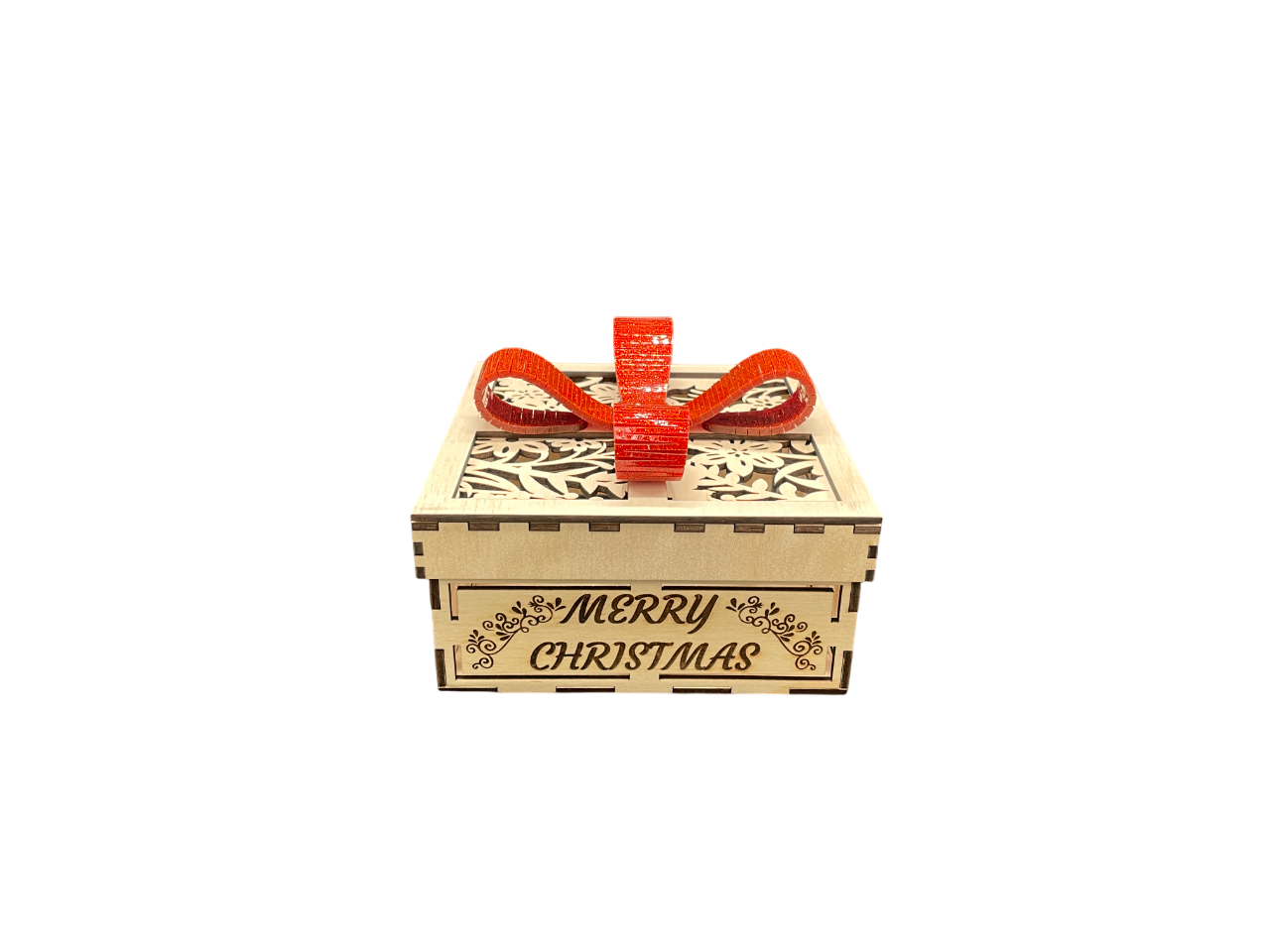 This charming square-shaped gift box is crafted from 3mm laser-cut panels, featuring custom engraved messages to suit any occasion and a stunning 3D laser-cut bow on the lid.